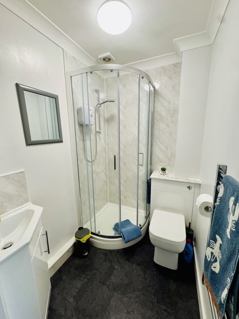 Electric Shower over Bath Upstairs; and Downstairs Shower room
